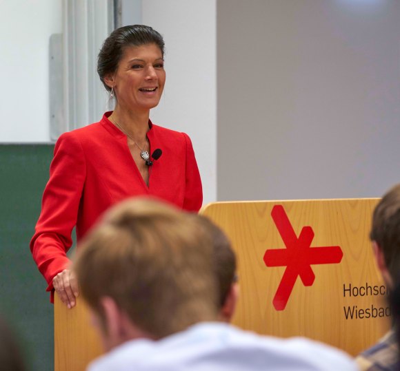 Am 27. April diskutierte Dr. Sahra Wagenknecht mit 250 Studierenden der Wiesbaden Business School über die Ursachen von Brexit und Trump.